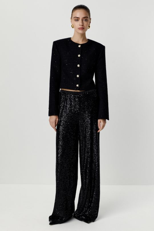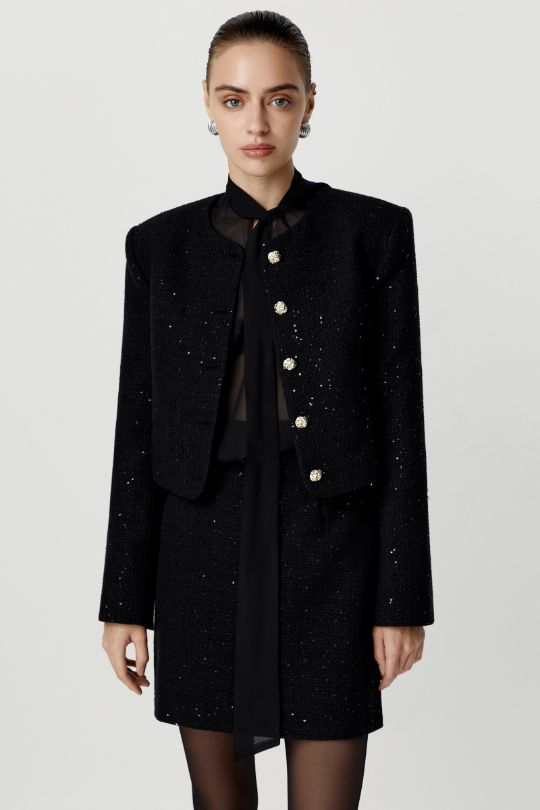 Жакет укороченный из твида с пайетками