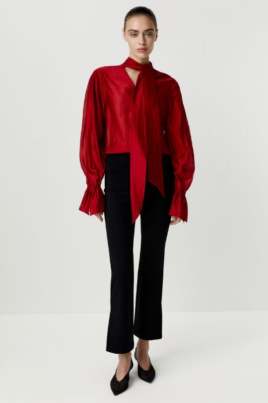 Блуза с объемным рукавом из полупрозрачной ткани