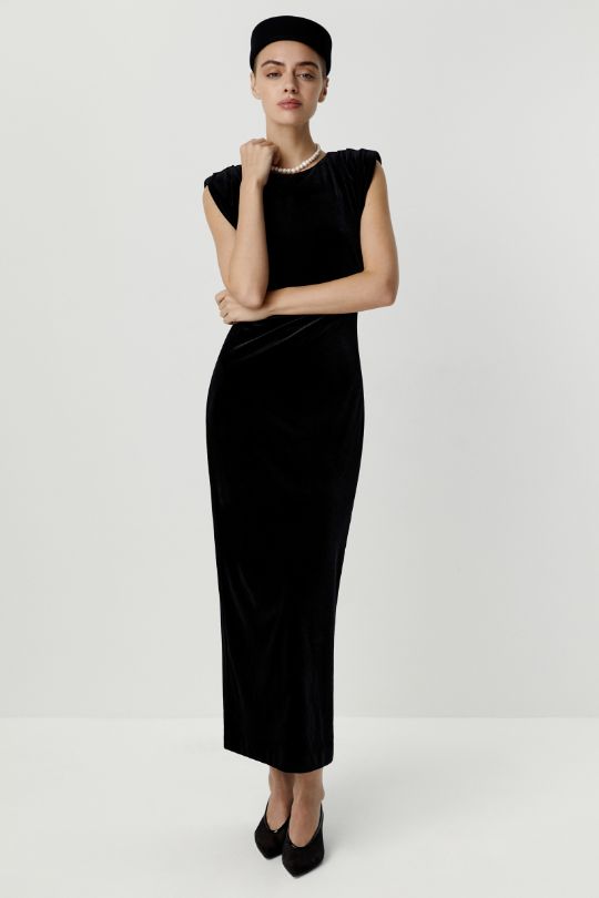 Платье макси из бархата без рукавов