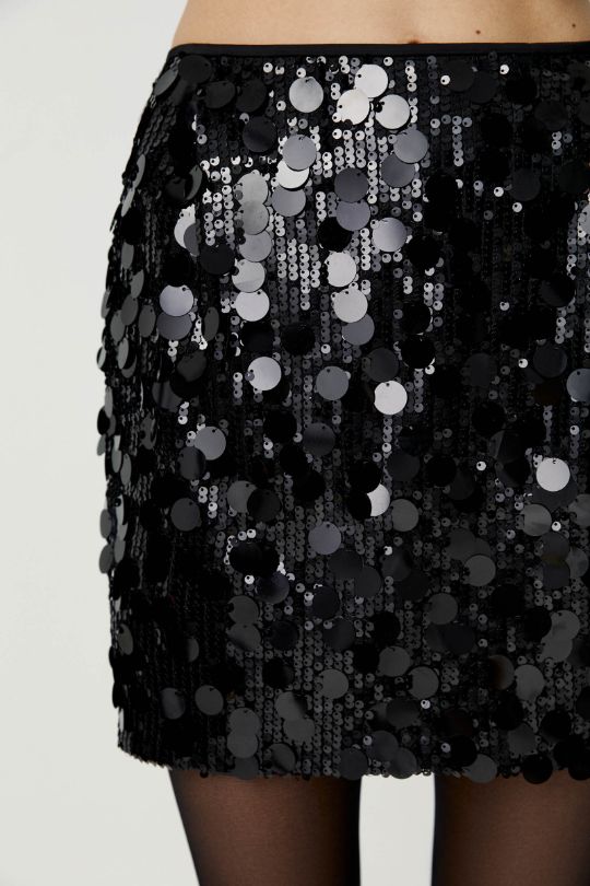 Юбка мини с защипами из ткани с пайетками