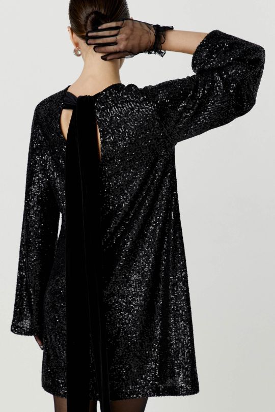 Платье мини из ткани с пайетками с бантом