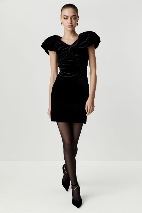 Чтобы повторить образ Одри Хепберн, один из самых узнаваемых в кинематографе, нужно маленькое черное платье, поэтому мы разработал идеальную модель облегающего силуэта в бархате с увеличенной линией плеч.