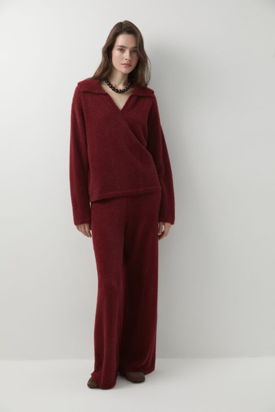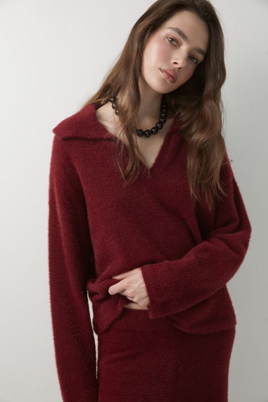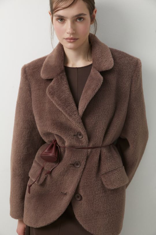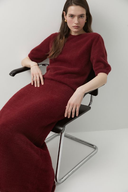 В коллекции бренд активно использует яркие оттенки, особенно характерные для десятилетия: кирпичный, пыльно-розовый и глубокий коричневый.